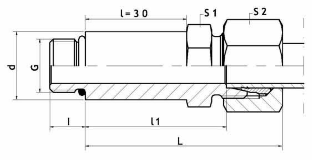 不带螺母和卡套时的订货代号示例:D10S-ZR/30X("/30"随l的转变而转变,,若当l=40时,,